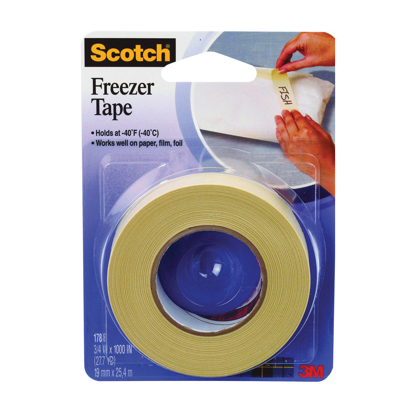 Scotch® freezer tape adheres to paper, plastic wrap and aluminum foil for tight, moisture-resistant seal. Safe from freezer to microwave.