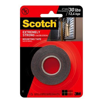 For your toughest jobs, go for our strongest hold Scotch® extremely strong mounting tape. Equipped with our powerful permanent adhesive, this double-sided tape defies gravity, holding an item up to 20 lb. It's weather-resistant for a long-lasting bond, indoors and outdoors. So whether you're mounting shelves in your new apartment or adding wall organization to the garage, Scotch® extremely strong mounting tape does the job quickly, easily and without the hassle of tools.