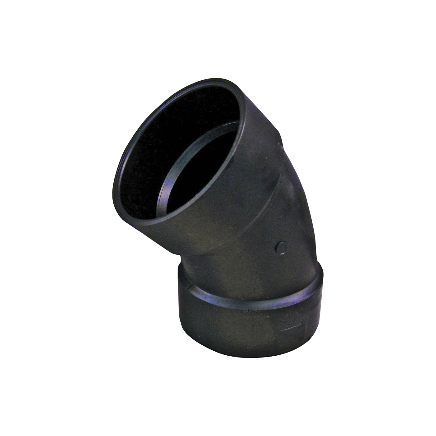 Used to change direction in piping in drain waste vent applications. Sometimes called an eighth bend. Conforms to ASTM D2661 and NSF-DWV. Accepted by FHA.