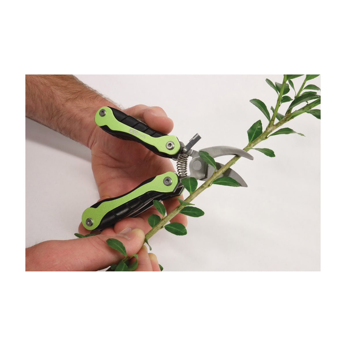 The Gardener's multi-tool is a pruner and accessory tool set designed for the gardener and the challenges one can encounter in the outdoors. From clearing small branches from trees, pruning rose bushes and trimming shrubs to a wide array of other outdoor uses, this multi-tool does it all. With a saw, scraper, knife, nail/staple puller, small ruler, file and multiple screwdrivers, the accessories have endless possibilities to tackle whatever the outdoors serves up to the gardener with so many different applications. When not in use, the multi-tool folds up into an included compact carry case with belt loop for easy transport and storage.