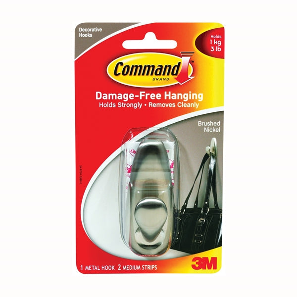 • Command Forever Classic Series FC12-BN Decorative Hook, 3 lb, 1-Hook, Metal, Brushed Nickel