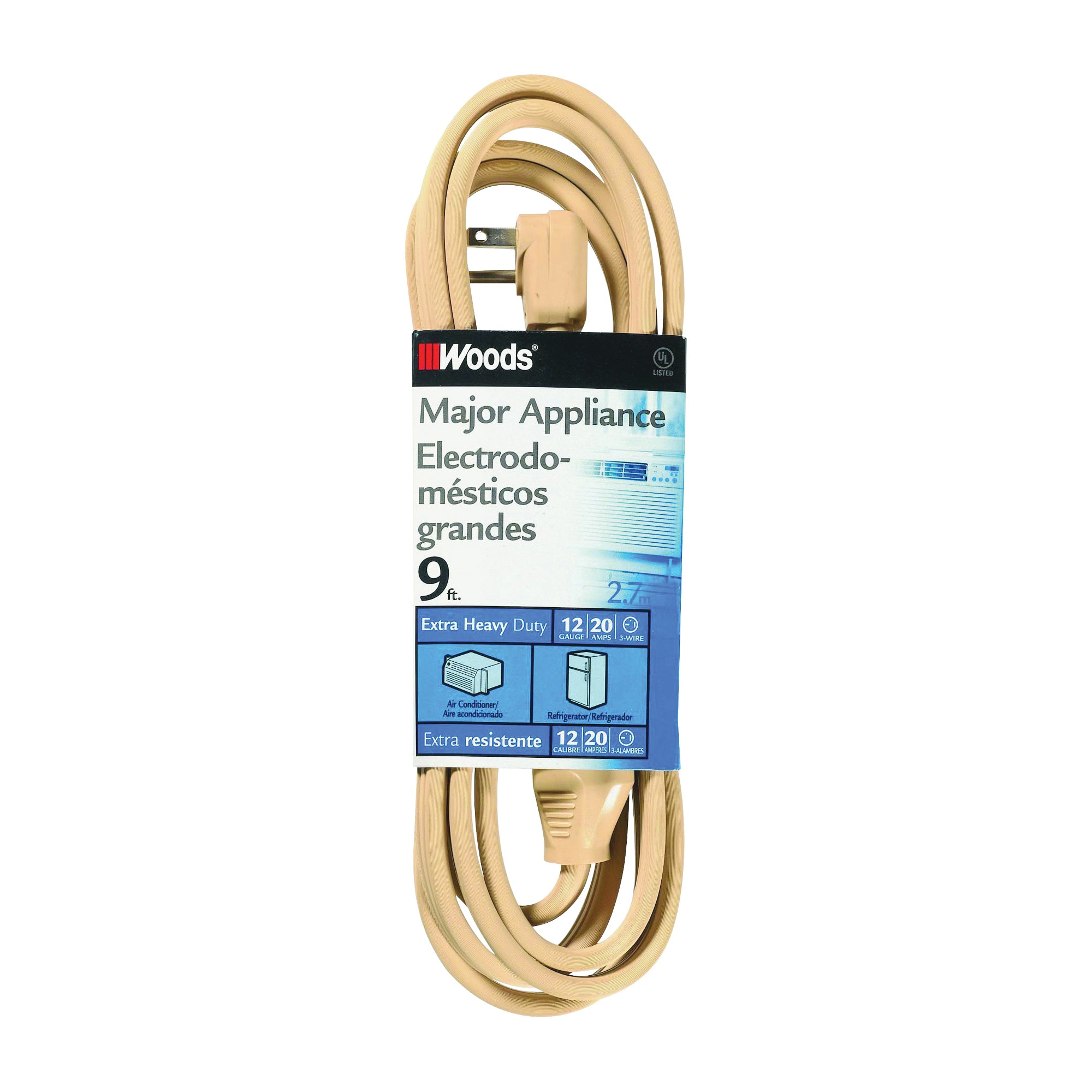 Features heavy-duty vinyl insulation and a right angle plug. 12 ga 3 wire, used for 20 A appliances such as air conditioners or refrigerators. 20 A/250 V. UL listed. Sleeved.