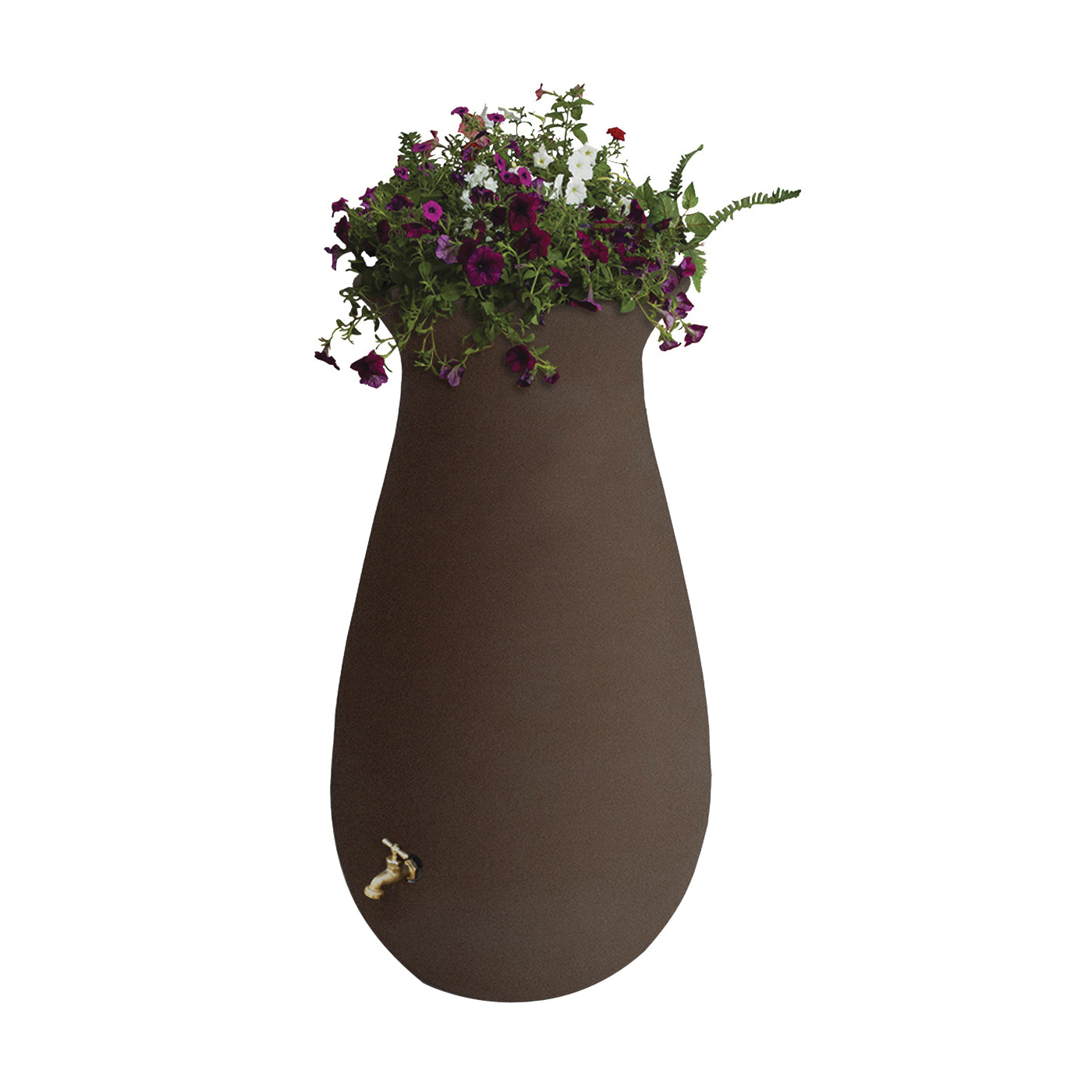 The Algreen EcoCascata rain barrel draws on the timeless decorative elegance of ceramic pottery with the enduring durability of modern resin. This 65 gal water reservoir is manufactured from resilient, rotomolded plastic able to withstand extreme temperatures and will not chip, fade or crack over time. The rain barrel features a shut-off nozzle, corrosionproof screen guard and brass spigot. The integrated planter top further enhances this rain savers decorative appeal.