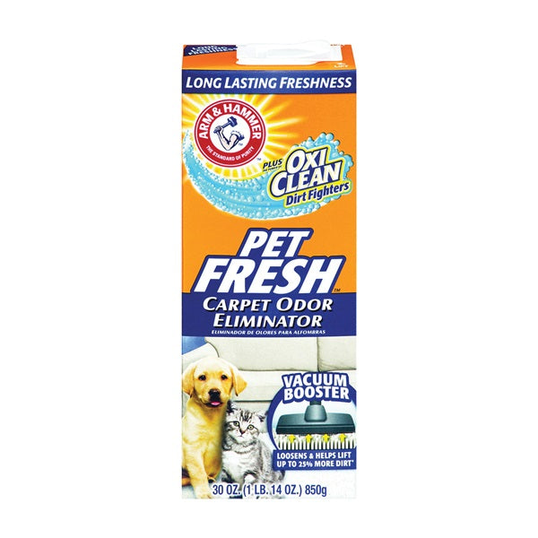 The power of baking soda and oxi clean dirt fighters absorbs odors and removes dirt from smoke, mold and mildew. Easy pet hair pick up. Does not remove carpet stains. Leaves behind a pleasant fragrance for long-lasting freshness.