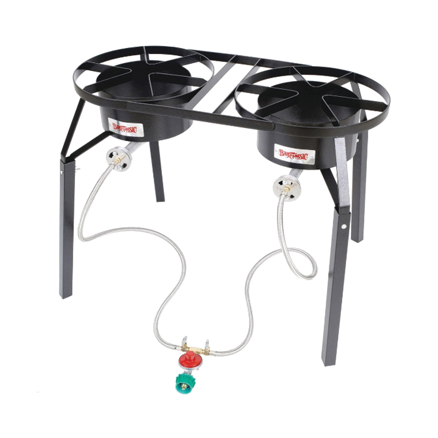 • Bayou Classic DB250 Dual-Burner Cooker, 2-Burner, LPG, 100,000 Btu, Manual Ignition, Steel