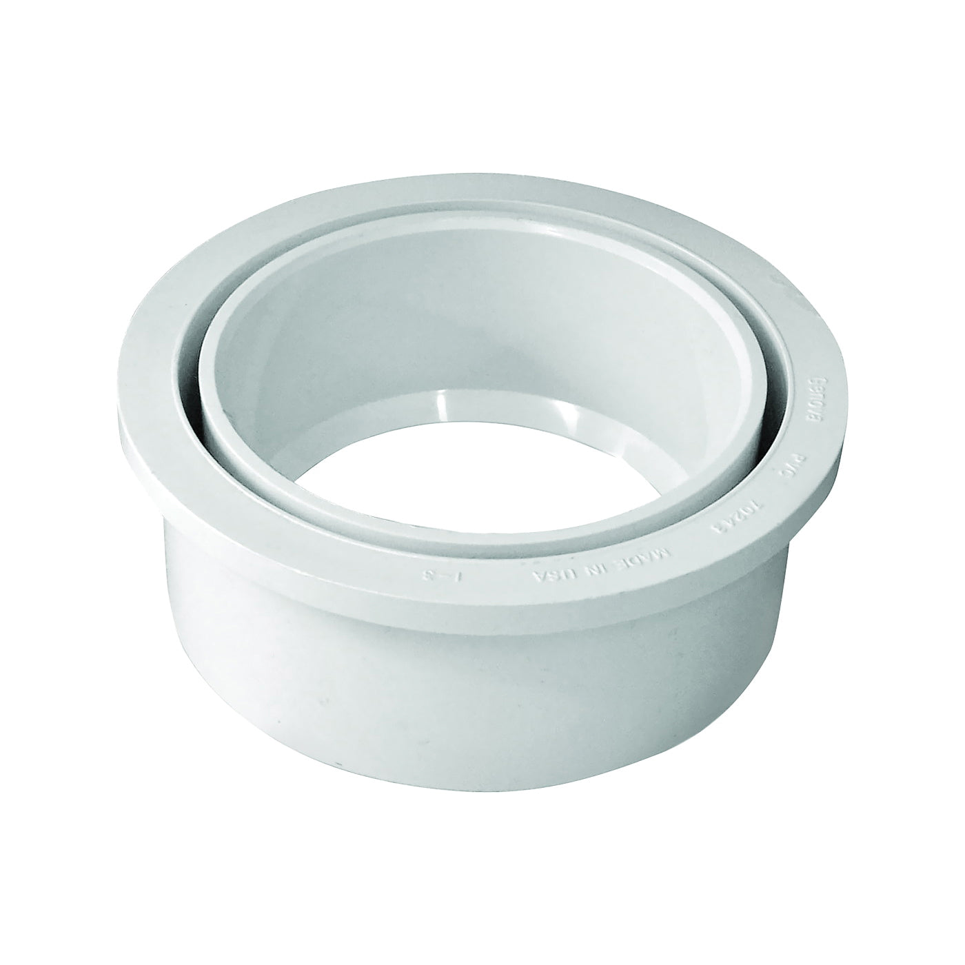 Inserts into fitting hub to reduce to smaller pipe size in drain-waste-vent applications.