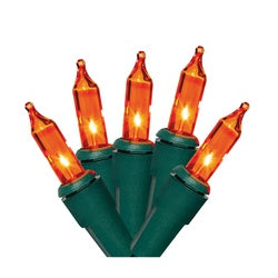 These brilliant and steady mini lights come in a set of 100. These incandescent lights are spaced 2.4 in between sockets on a 20 ft green wire with end to end connectors so you can connect multiple sets.