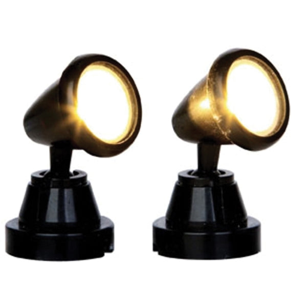 Lemax Round Spotlight Set, 4.5 VDC, 50 mA, LED Lamp, Bright White Light, Plastic, Dimensions: 1.38 in H, Includes: (2) Spot Lights, Battery Box