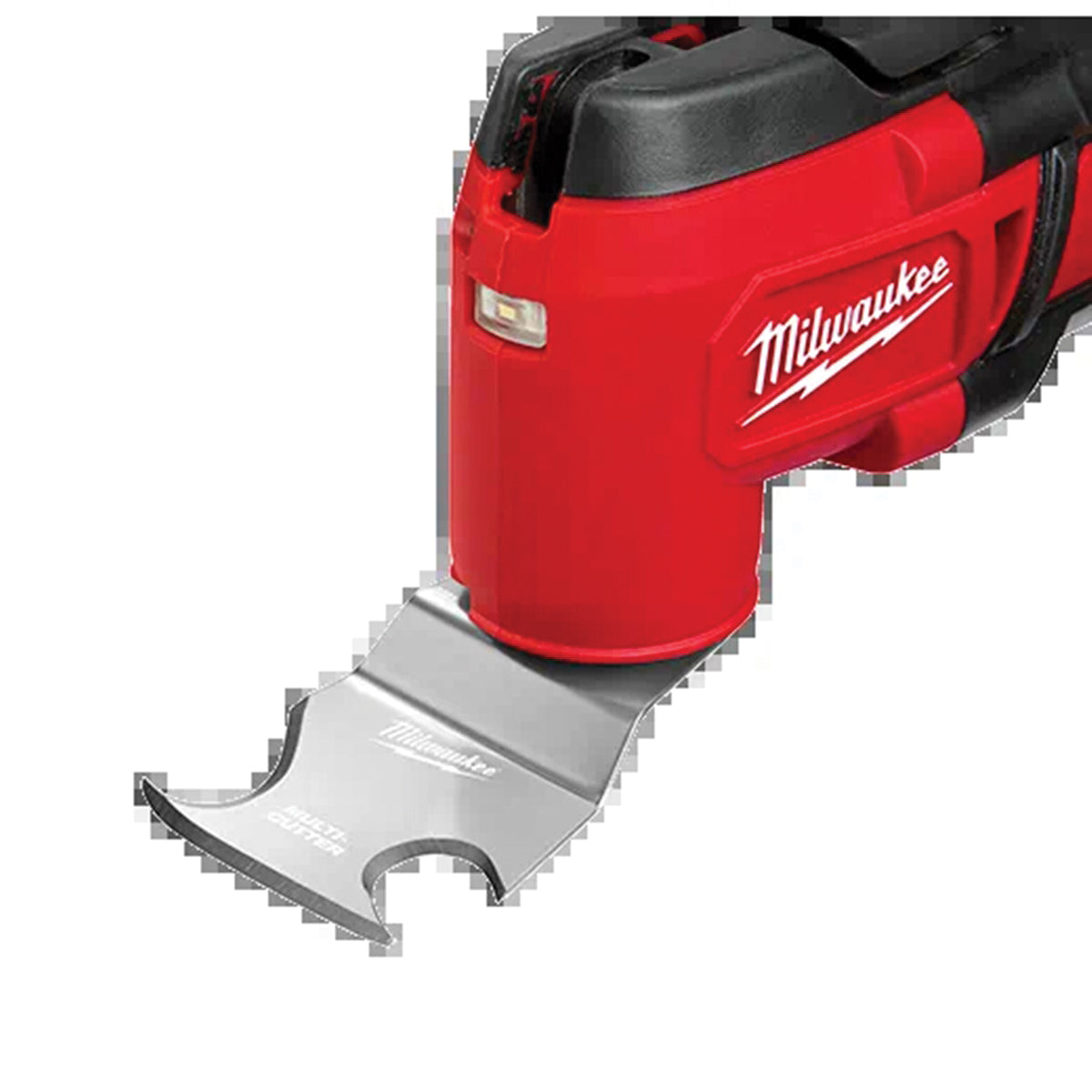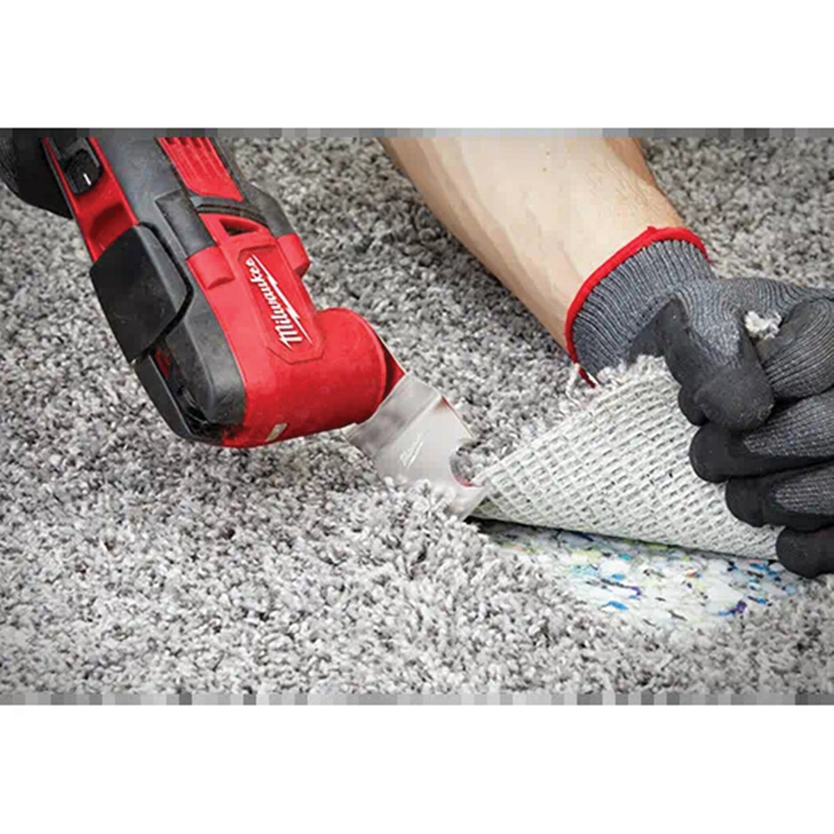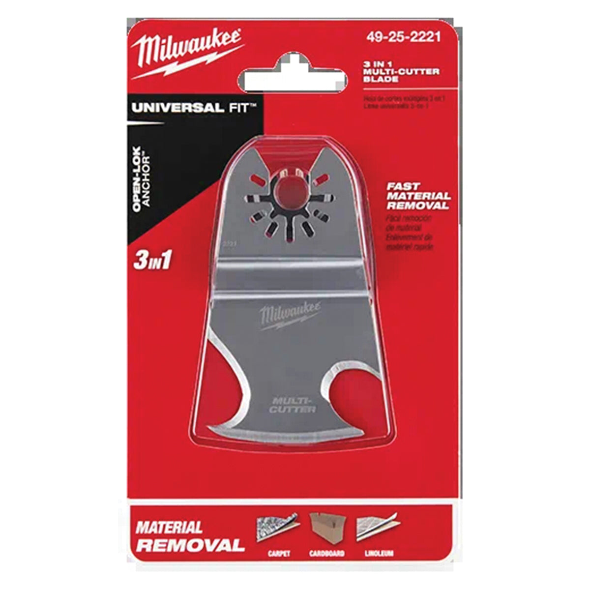 Our universal fit OPEN-LOK™ three-in-one multi-cutter scraper blade one pack is designed for oscillating multi-tools. The Milwaukee® three-in-one multi-cutter scraper blade is made from solid stainless steel with three different sharpened edges to bring you a three-in-one multi-cutting blade. This blade efficiently cuts through carpets, roofing paper, asphalt roofing shingles and cardboard more efficiently than a standard pull-through blade. You can implement the three different cutting edges to make pull cuts, push cuts and scraping cuts.