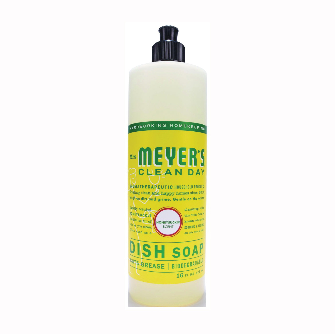 Mrs. Meyer's Clean day honeysuckle dish soap is rich, thick and makes grease disappear like nobody's business. This concentrated, biodegradable liquid dish formula is designed for hand washing dishes and pots and pans. The formula contains plant-derived cleaning ingredients and rinses clean. All you need is a squirt or two and you're on your way.