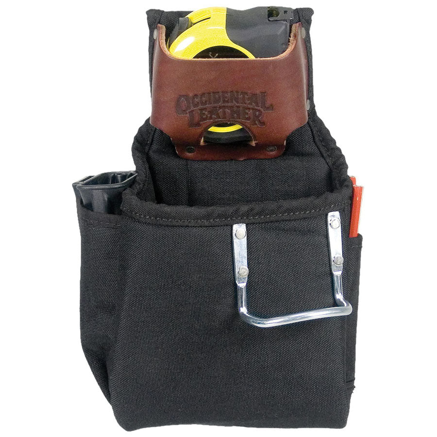 Compact multi-function pouch. Combines six pockets and tool holders in one space on your belt. Equipped with a 2003 Oxy Tool Shield™. Just the bare essentials. Carry a tape, hammer, knife or chisel, pencils and fasteners. Ideal for small jobs.