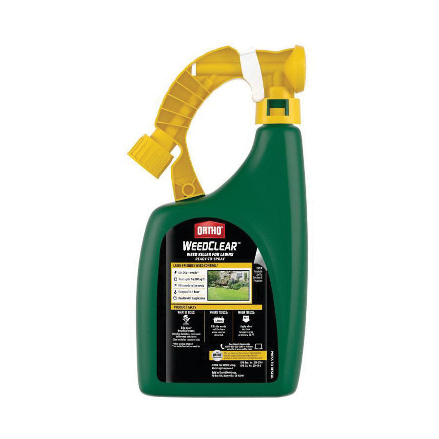 You can kill weeds without harming your lawn with Ortho® WeedClear™ weed killer for lawns ready-to-spray. This weed killer kills over 250 common weeds, including dandelions, clover, poison ivy, chickweed and dollar weed. It is made especially for residential lawns and contains three proven ingredients to specifically target and destroy other common lawn weeds, without harming your grass. This herbicide works by entering weeds through their leaves and moves throughout the plant to kill all the way down to the root. You'll see visible results in hours and it becomes rain-proof within one hour upon drying. To apply, connect your garden hose to the sprayer and set the nozzle to your desired setting. People and pets may enter the treated area after the spray has dried. For good results, use when weeds are small and actively growing in the spring or fall. One 32 oz bottle treats up to 16,000 sq-ft.
