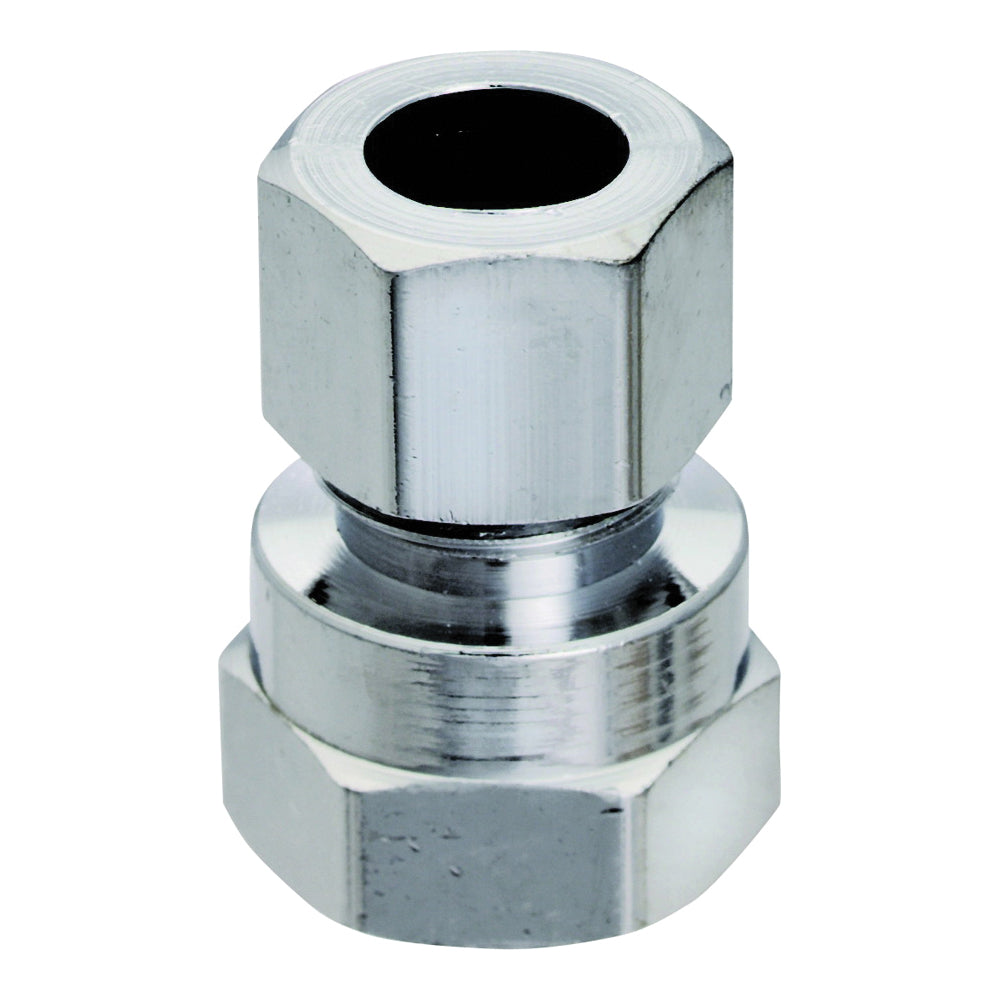 Plumb Pak Straight Adapter, Nominal Size: 3/8 in, FIP x Compression Connection, Dimensions: 3-3/4 in H x 2-5/8 in W, Brass, Chrome