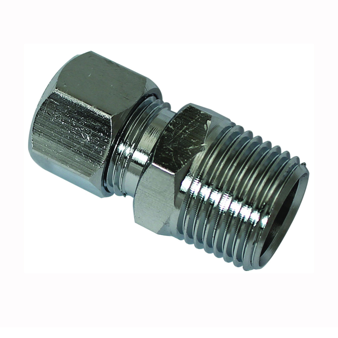 Plumb Pak Straight Adapter, Nominal Size: 3/8 in, FIP x Compression Connection, Dimensions: 3-3/4 in H x 2-5/8 in W, Brass, Chrome