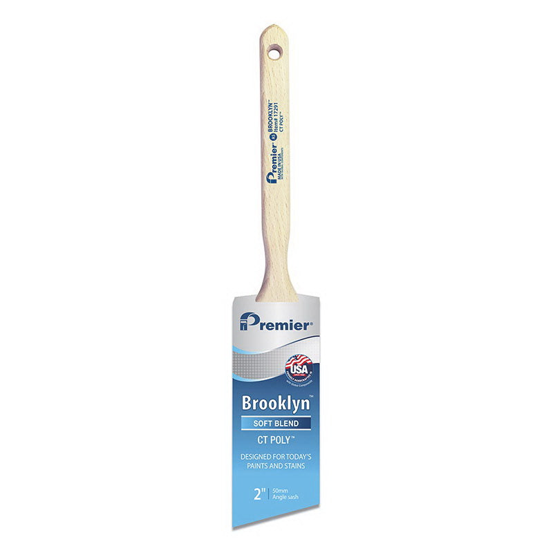 Premier Brooklyn Paint Brush, Angle Sash Brush, 2-3/4 in Bristle Length, Polyester Bristle, Stainless Steel Ferrule, Hardwood Handle, 2 in Width, 9/16 in Thickness