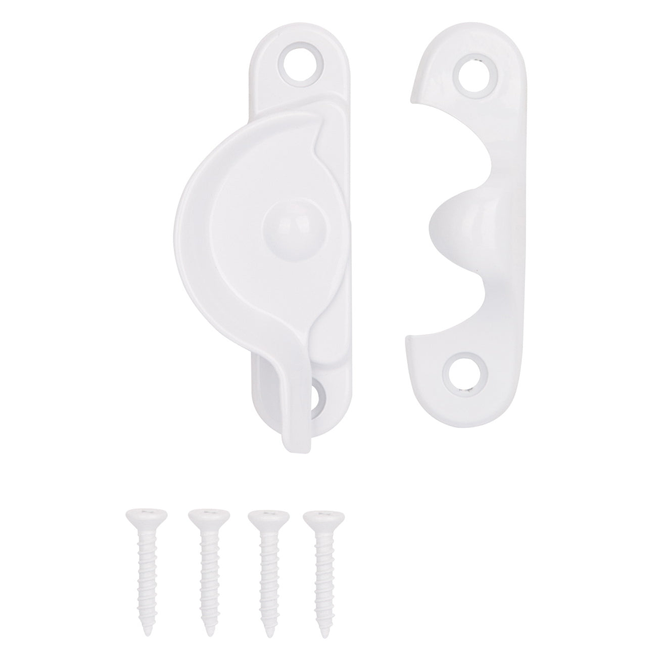 The ProSource sash cam lock is made of steel with a white powder coated finish. Screws included.