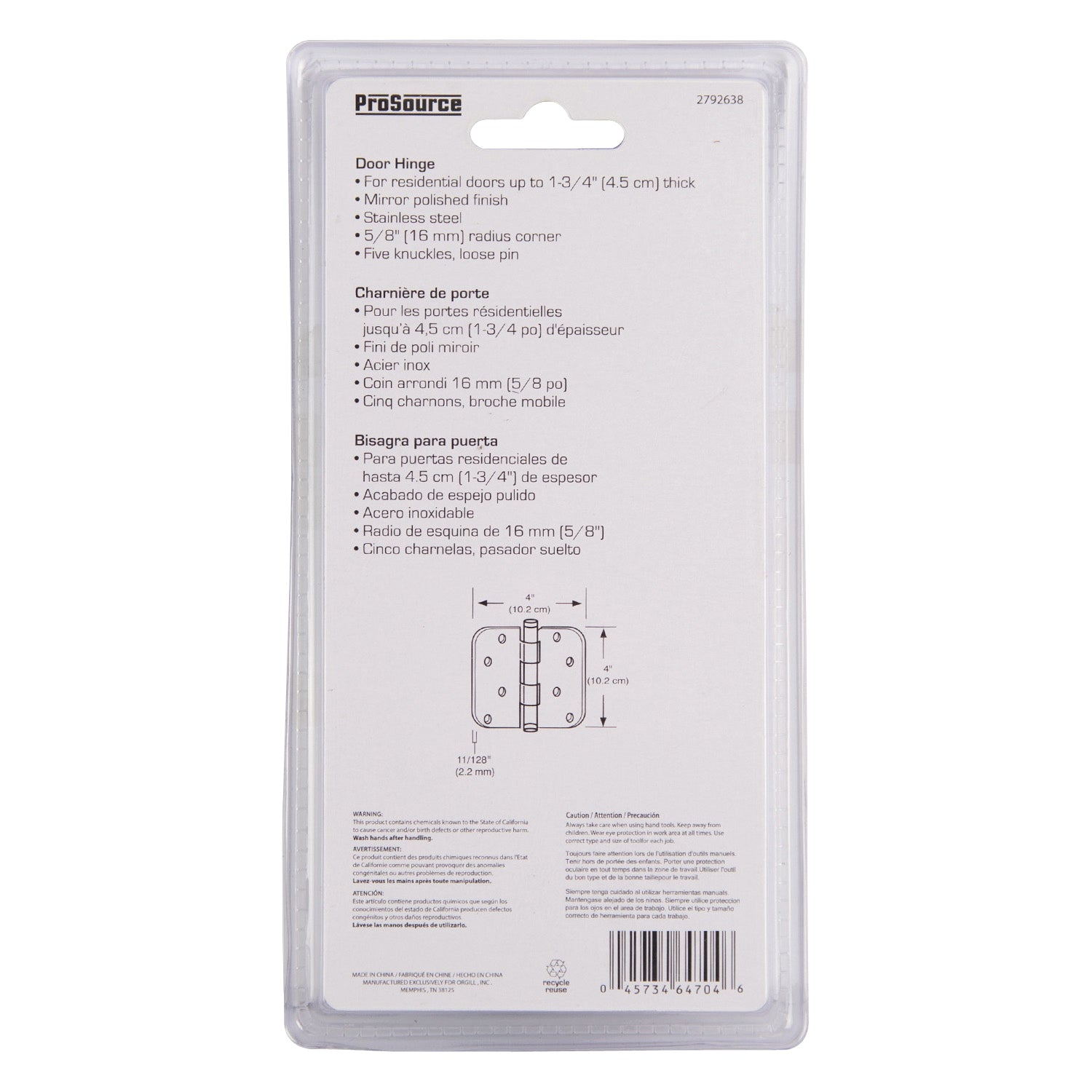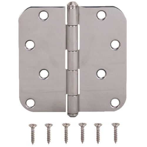 The ProSource door hinge is made of steel. The hinge offers a unique and creative hardware solutions for your home. Radius corner. It's 2.2 mm thick and the screws are included.