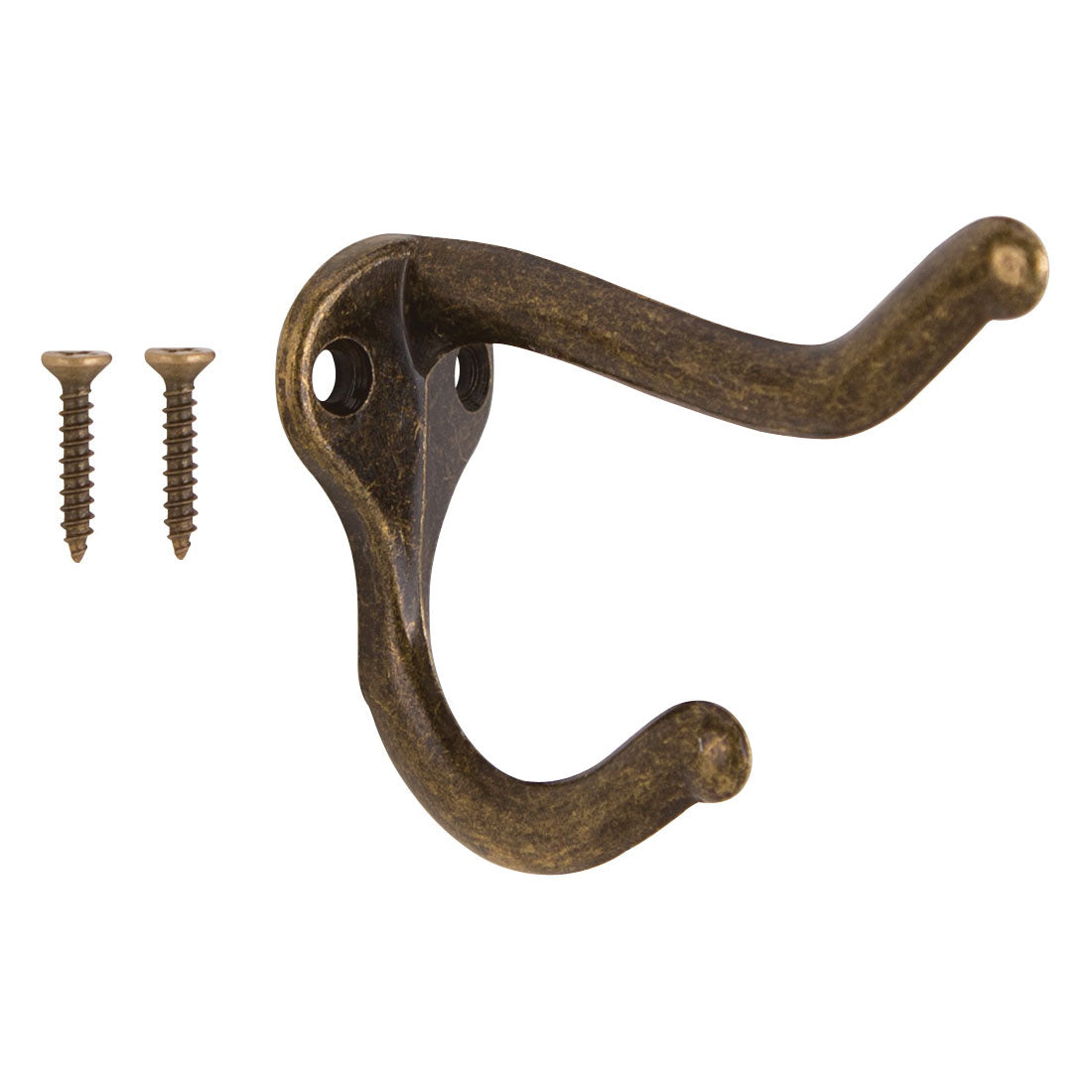 • ProSource H62-B071 Coat and Hat Hook, 22 lb, 2-Hook, 1 in Opening, Zinc, Antique Brass