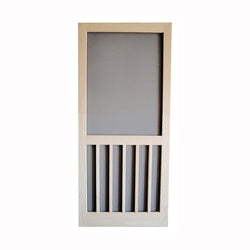 Mortise and tenon solid wood construction add strength and durability. 1-1/8 x 2 in stile creates strong framing member. Each joint sealed with a waterproof cross linking resin adhesive. Kiln dried to eliminate warping. UV-resistant fire retardant fiberglass insect screen. Beveled edges on framework. Spline applied screen allows easy repair. Reversible for left or right handed openings. Hardware not included. 3-year warranty.