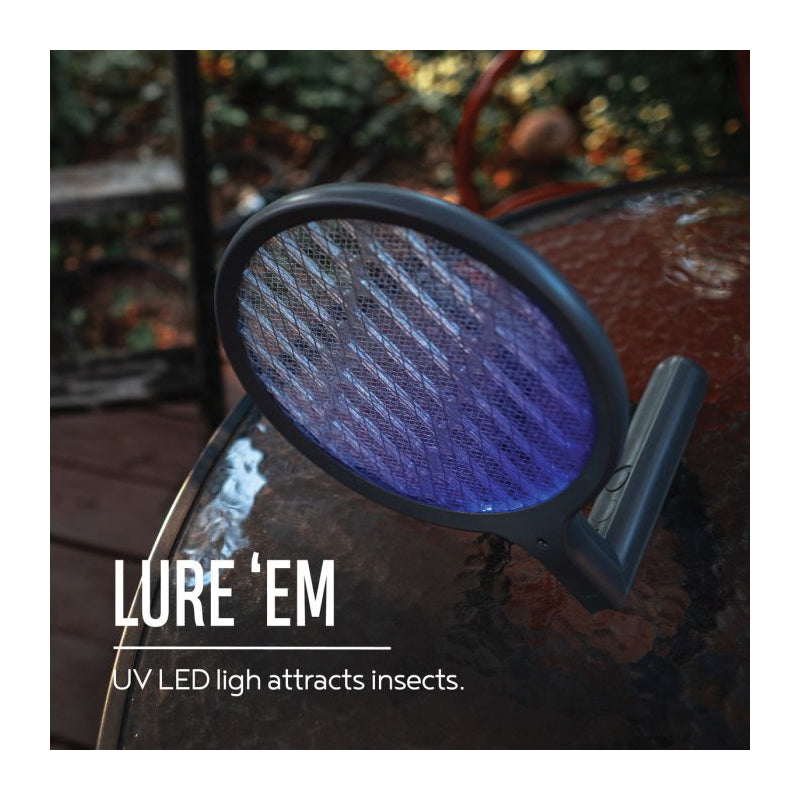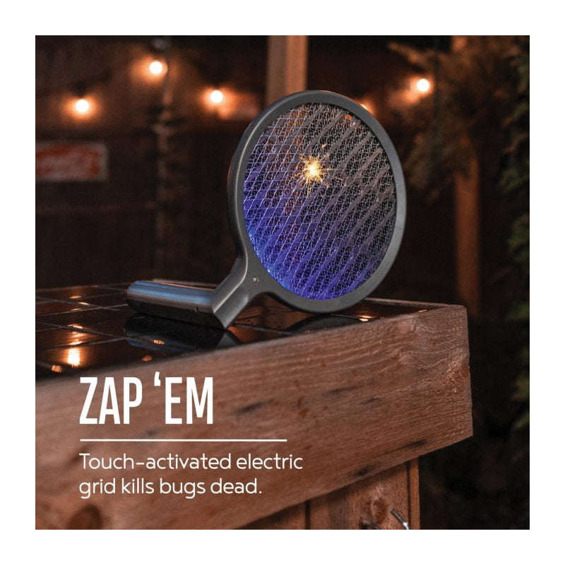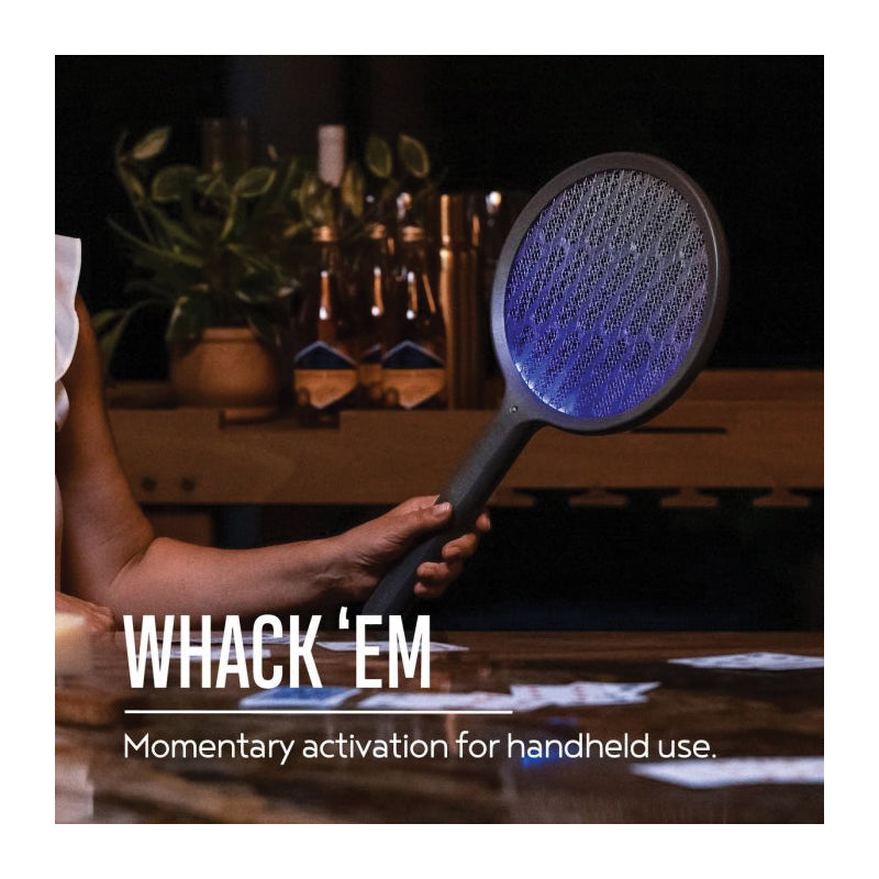 The electric fly swatter by Skeeter Hawk is a rechargeable, portable, personal, pest defense system and is effective at killing all types of flies, moths, June bugs, no-see-ums, mosquitos and thousands of other flying pests. Swing the racket yourself and zap pests out of the air or fold the handle to place it on a flat surface and let our patented dual-band UV light technology do the work. It attracts flying insects better than other traps and zappers on the market. The electric fly swatter is micro-USB rechargeable and has a built-in white LED to help you see where you swing. For top results in folded mode, set down the electric fly swatter outdoors away from gathering areas to attract bugs away from the space your family utilizes. For complete protection against mosquitos be sure to wear some form of repellent, like our essential oils wearable tabs.