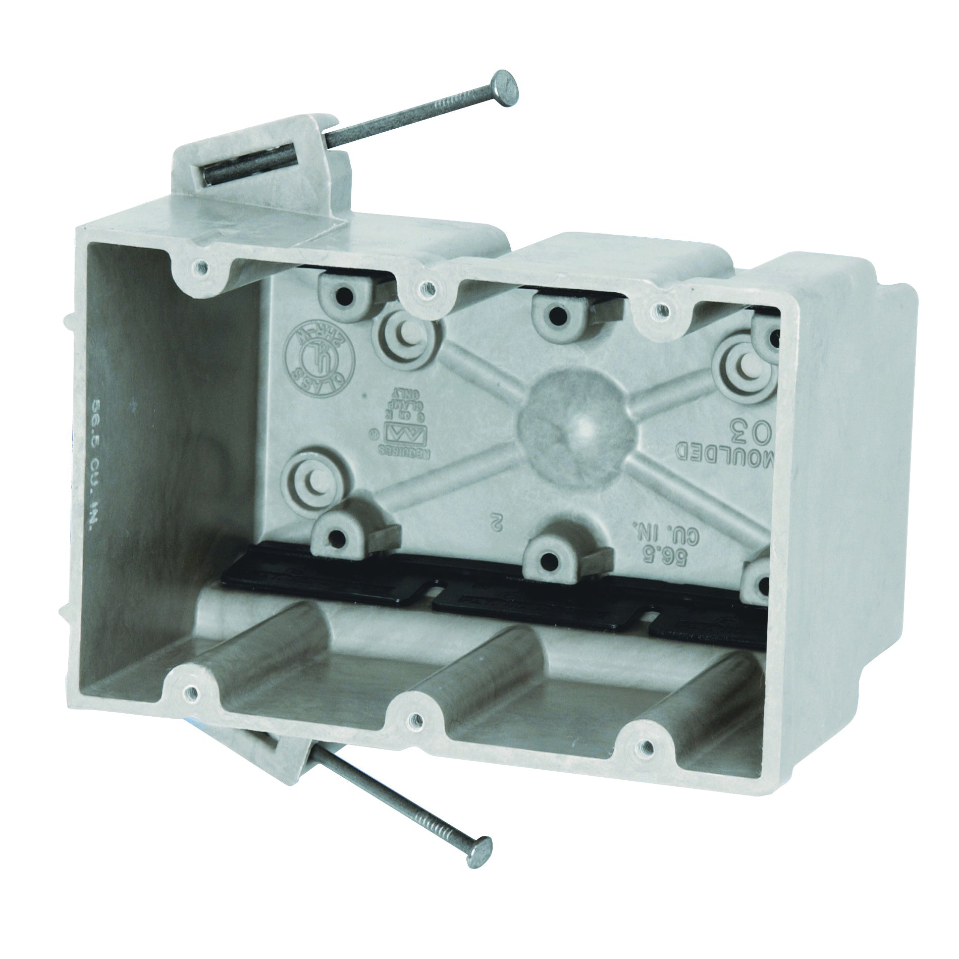 • fiberglassBOX 3300-NK Electrical Box, 3 -Gang, 6 -Outlet, 12 -Knockout, Fiberglass Reinforced Polyester BMC