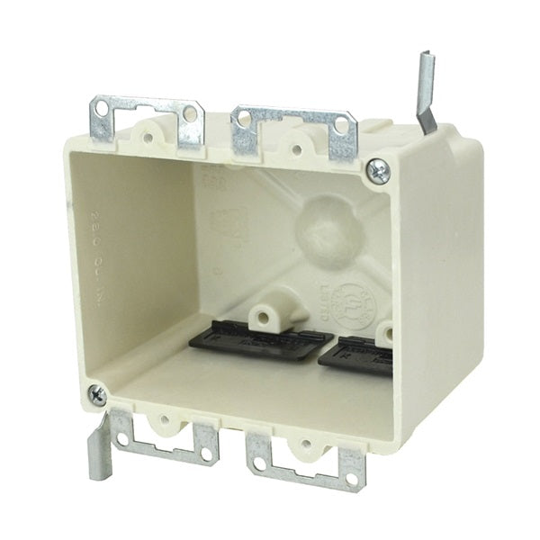 Thermoset fiberglass with ears, wing brackets and speed clamps. Lightweight, non-corrosive, non-conductive, no ground required. Will not melt or distort in high heat. Shatter-resistant in cold temperatures. 2-3/4 in x 4-1/8 in x 3-1/4 in. 2 hrs wall fire rating. UL listed.