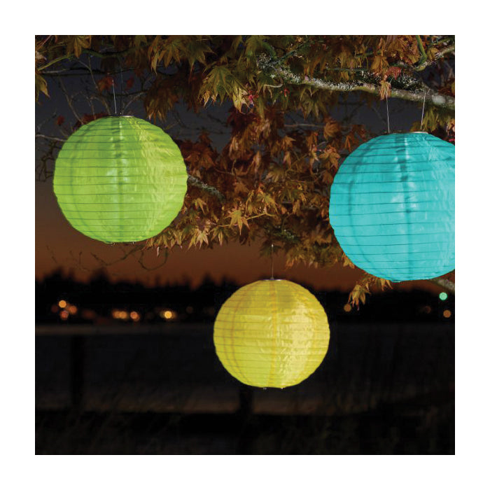 Bigger and bolder the multi-functional Soji illume will bring a bold yet elegant glow to your outdoor spaces. The perfect choice for an outdoor soiree. This 14 in round Asian-inspired festival lantern is constructed of durable weather-resistant nylon and comes equipped with dual white LEDs and a stainless steel hanging handle. Created for outdoor use year-round, place in direct sunlight.