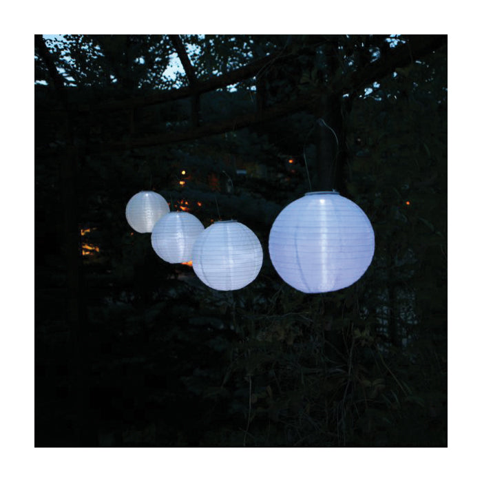 Soji solar powered lanterns turn on to glow without the hassle of electrical cords. These elegant yet festive lanterns accordion open to a 10 in round globe. They collect sunlight all day and automatically turn on at dusk to cast a beautiful glow by night. Soji solar lanterns are handmade, constructed of heavy duty nylon for outdoor use and available in an array of fantastic colors. Our cordless Soji original lantern is equipped with two high-powered white colored LED bulbs. Also included are a stainless steel hanging handle, one AAA rechargeable battery, a photo light sensor and On/Off power switch. All Soji original solar lanterns include an alligator clip for optimal hanging. The alligator clip easily fits our Soji hanging handles, enabling easy clip On/Off hanging. Each Soji original cordless lantern comes with a base unit accessory to convert the lantern into a table top unit if desired.