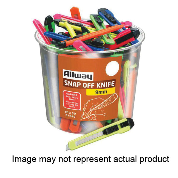 ALLWAY Utility Knife, Snap-Off, 13-Point Blade, Blade Thickness: 9 mm, Includes: (50) Snap-Off Knives