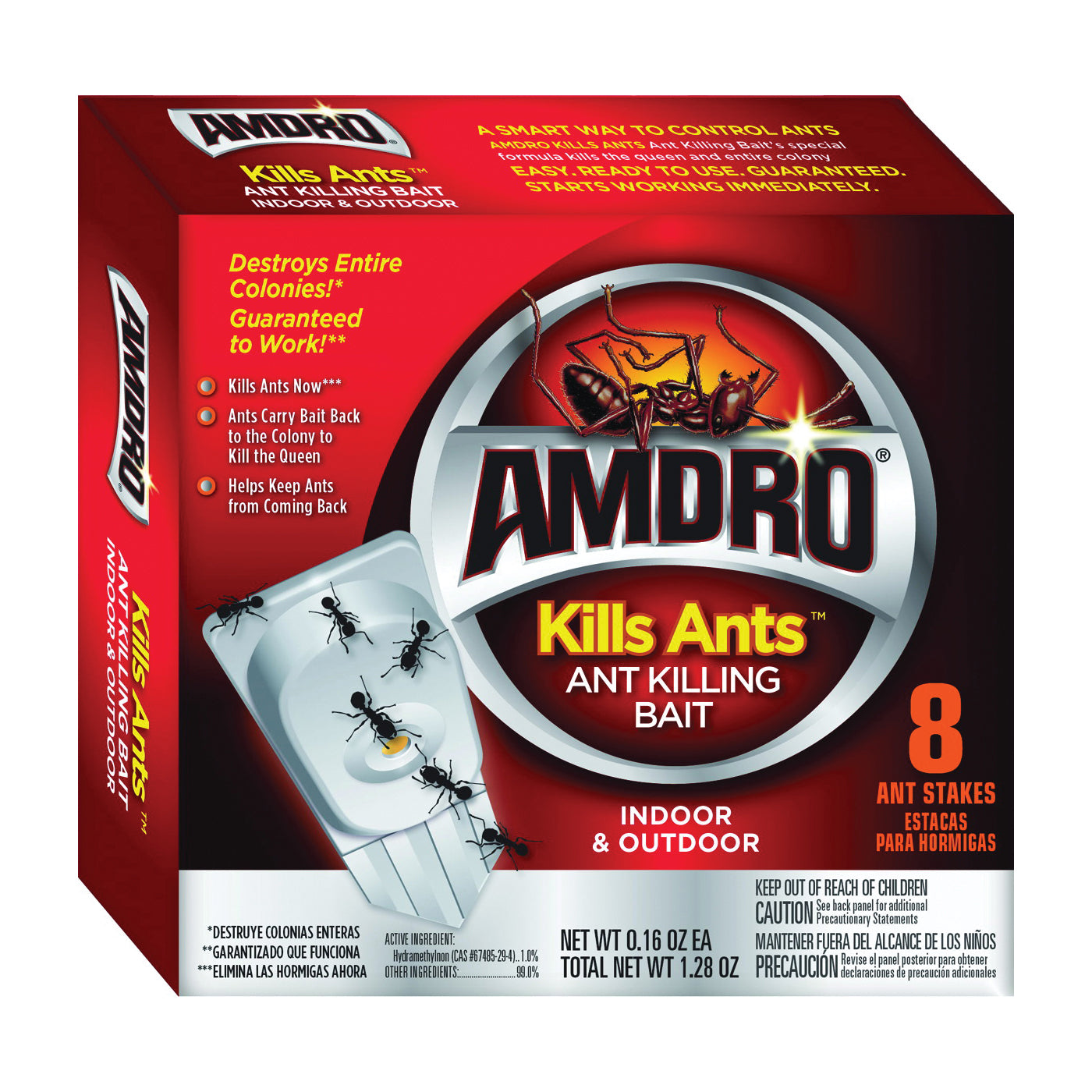 Kills grease and sweet-eating ants. Helps control aphids and scale. Protects trees, flowers and shrubs. Long-lasting. Controls the problem at the source, the colony. Destroys the entire colony with slow acting poison which allows time for the worker ants to get the food back to the colony. Can be used indoors or outdoors. 8 stakes/Pack.