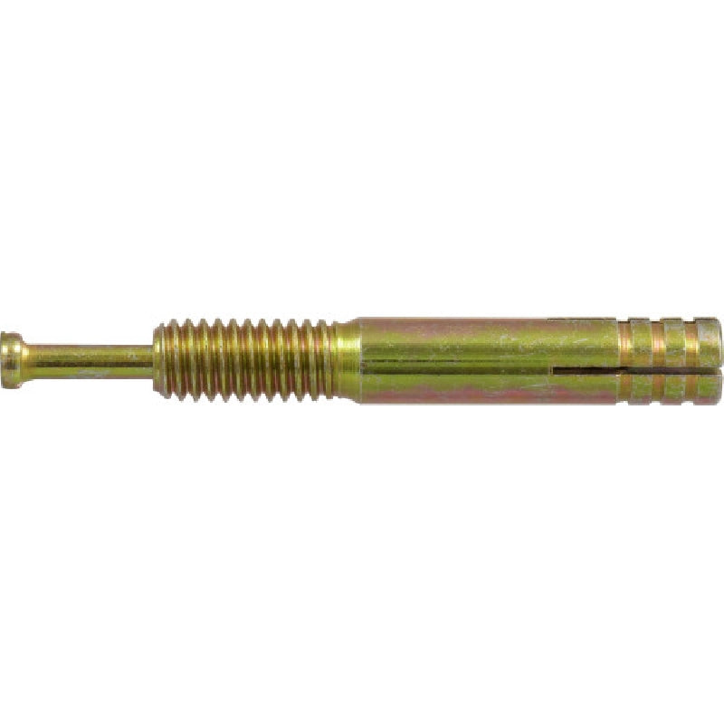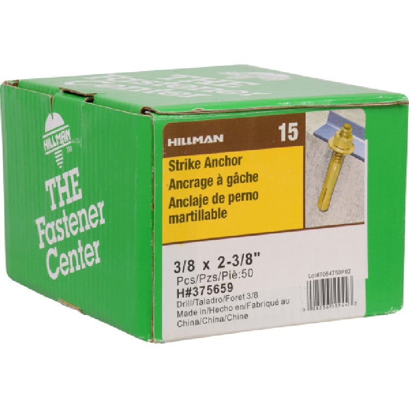 Strike anchors are designed for concrete applications only. For installation, anchor is inserted into pilot hole, nail is struck and expands the anchor, locking it in place. These anchors are removable with a claw hammer.