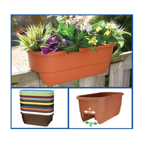 Your customers will love how they fit securely without using any tools, brackets or mounting hardware. Not only will their decks come alive with color, but they will free up valuable deck space as well and you will free up valuable retail floor space by only having to advertise one sku that fits both 4 and 6 in rails. Taller and deeper than most railing planters.