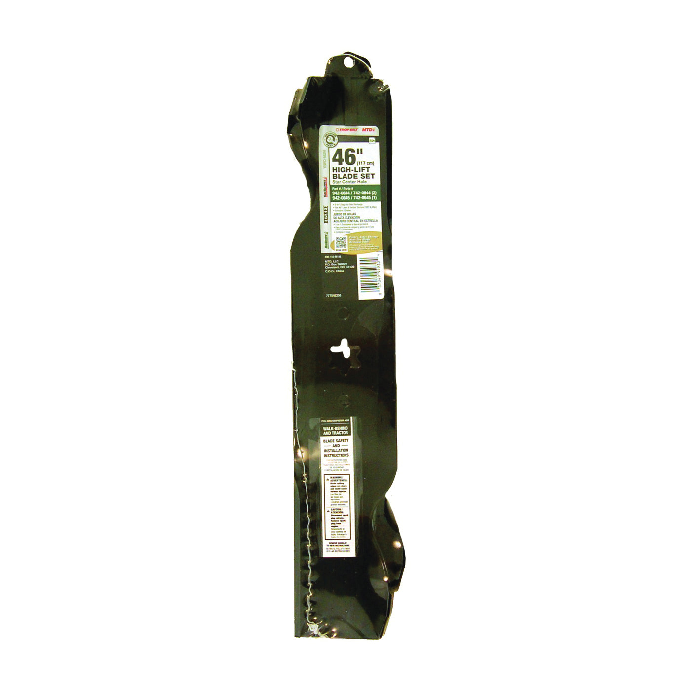 High-quality steel blades fit 46 in deep deck MTD mowers 1997 and after. Austempered for an edge that stays sharp longer. Installs in minutes. Includes one 14-7/8 in No.742-0645 blade and two 16-9/32 in No.742-0644 blades.