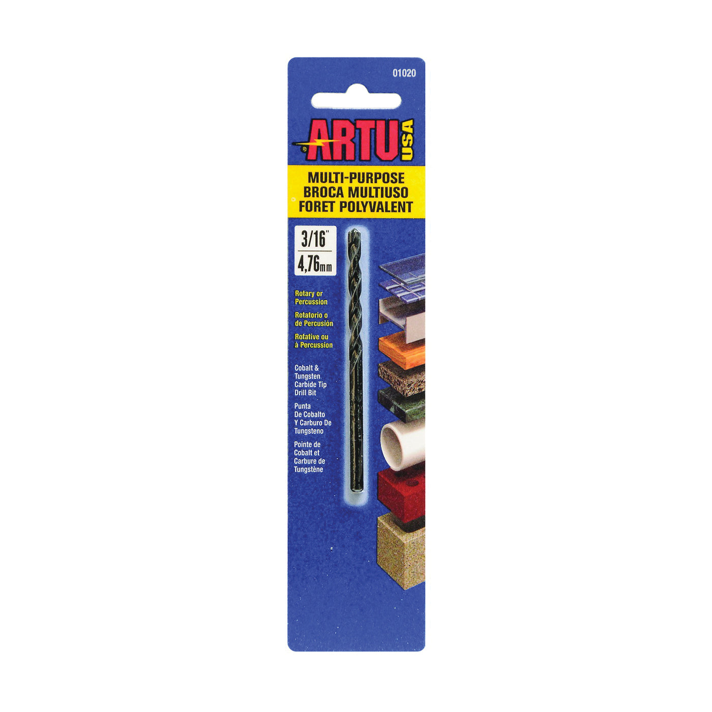 For rotary or percussion drilling. Chrome vanadium steel shank with tungsten carbide/cobalt tip that is resharpenable and able to withstand drilling temperatures up to 2000 deg F, no center punch needed. Use with cordless drills, corded drills and drill presses in applications such as masonry, ceramic tile, concrete, brick, fiberglass, plexiglass, glass, cast metals, hardened steel, granite, marble, woods, plastics. Not recommended for use on mild steel. This includes aluminum, angle iron, copper, galvanized pipe, brass and stainless steel.