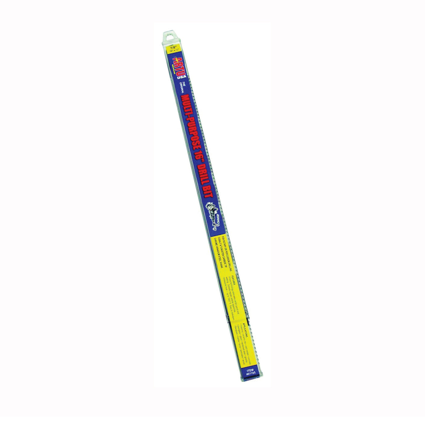 For rotary or percussion drilling. Chrome vanadium steel shank with cobalt and tungsten carbide tip that withstands temperatures up to 1900 deg F. Special negative back grinding enables tip to bore through applications such as masonry, ceramic tile, concrete, brick, fiberglass, plexiglass, cast metals, hardened steel, granite, marble, woods and plastic with a filing action rather than a cutting action. No center punch required, eliminates walking and can be re-sharpened. This includes aluminum, angle iron, copper, galvanized pipe, brass and stainless steel.