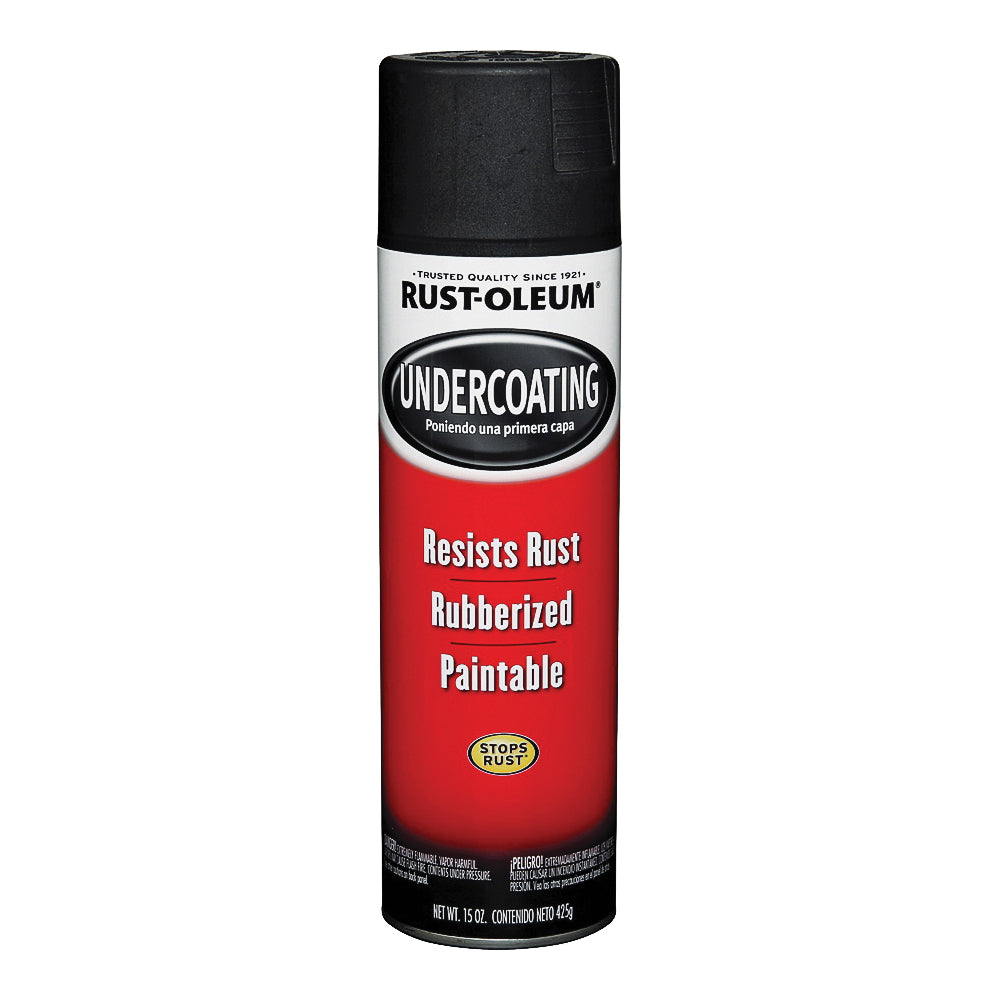 RUST-OLEUM® Rubberized undercoating is an easy to use black rubberized protective coating. It provides corrosion protection from water, salt and other chemicals. Its helps deaden sound and provides a barrier against rust on cars, trucks, trailers and other recreational vehicles. Use on bare or primed metal on the underbody of cars, trucks, trailers and other recreational vehicles. Undercoating features an advanced spray system that allows you to spray at any-angle, even upside down for those hard to reach areas. A comfort spray tip with a wider finger pad reduces fatigue caused by continuous spraying.