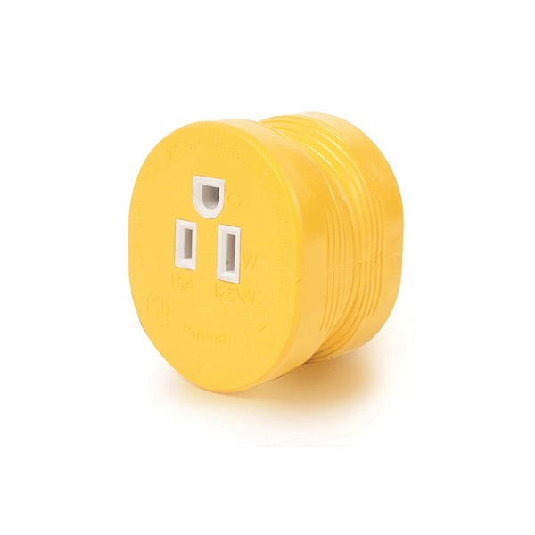 Camco USA RV 30M/15F amp PowerGrip adapter is an electrical adapter with a contoured shape for easy removal from outlet. It has a 30 A male end and 15 A female end. 125 V/1875 W.