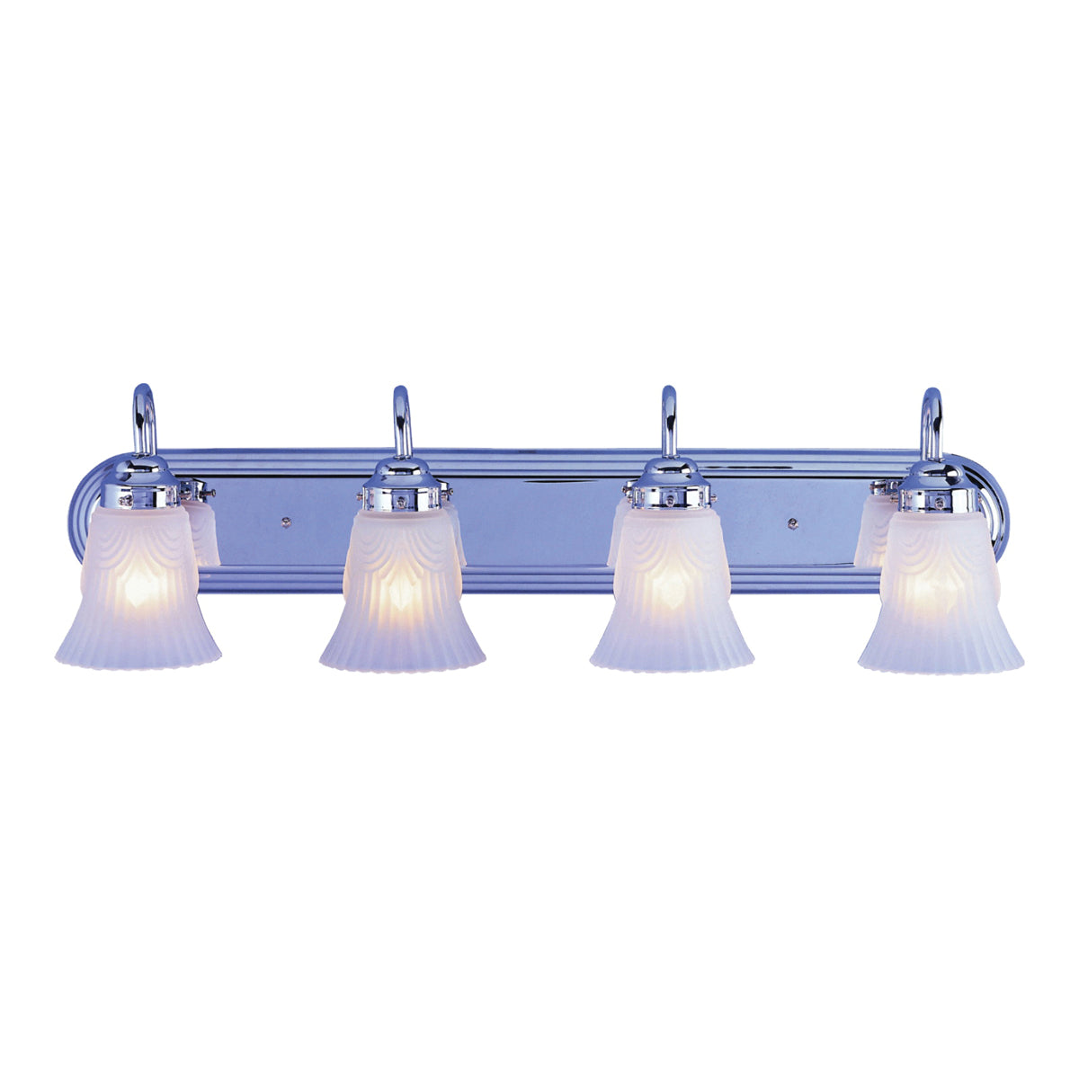 Frosted pleated glass shade. 30 in L x 8-1/2 in H x 7-1/4 in D. Uses 4 clear medium base bulbs, 60 W maximum. (not included). cULus listed.