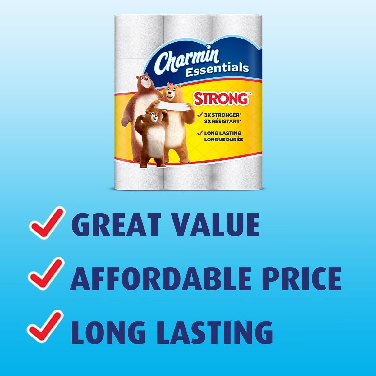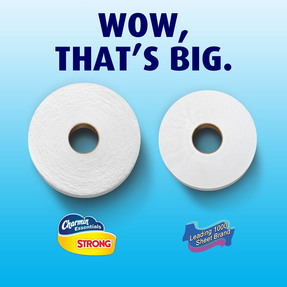 Looking for the best value? You're in the right place. Charmin Essentials Strong mega roll is 3X stronger when wet vs Scott 1000 and available at a similar price. More convenient, more value and more 'gos' per roll than our double roll so you can change the roll even less often.