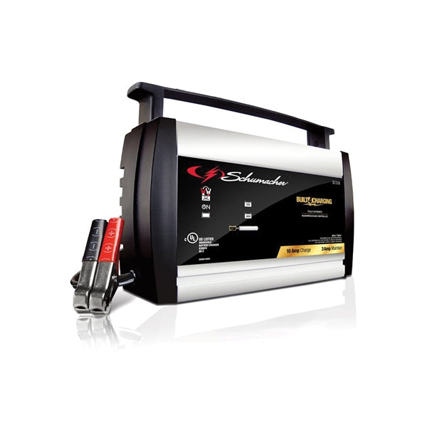 Schumacher Battery Charger, Input Voltage: 120 V, Output Voltage: 6/12 V, Input Current Rating: 2.5 A, Battery Type: AGM, Dimensions: 3.63 x 10.5 x 7.88 in