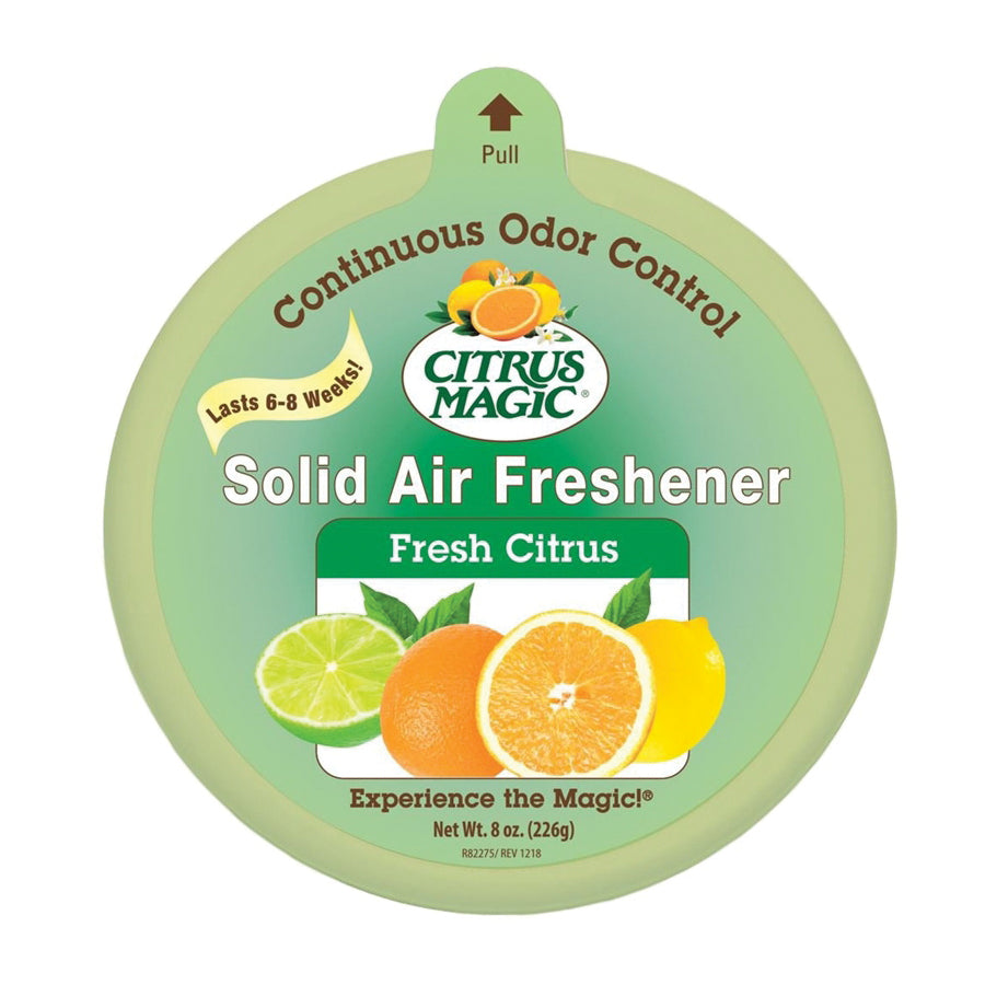 Citrus Magic Solid air fresheners provide convenient and continuous odor controls, that lasts! Using a unique formula, the solid air fresheners work to absorb odors while the fresh, clean scent fills the air. There is no mistaking the clean, fresh scent you find once you peel back the label of our popular 8 oz. Solid air fresheners. Controls odors and brightens up the air anywhere for up to 8 weeks.