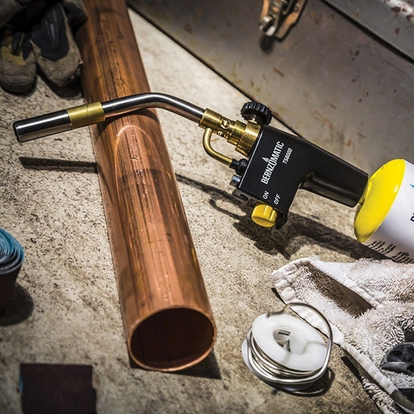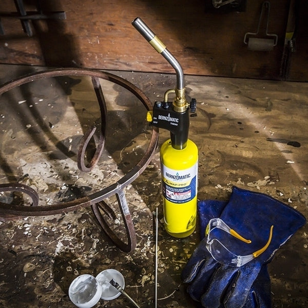 Work faster and more efficiently with a higher burn temperature than standard propane. The BernzOmatic MAP-PRO hand torch cylinder contains premium fuel suited for a variety of jobsite projects including soldering large copper pipes, brazing and heat treating. Constructed of durable steel, the slim, lightweight cylinder is easy to grip and maneuver. Flame temperature in air is 3730 deg F.