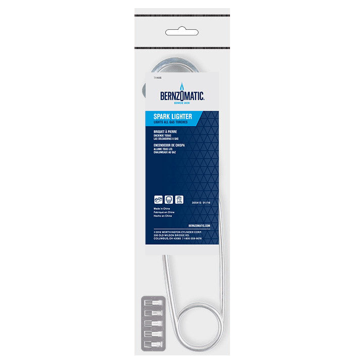 Designed to ignite manual start torches and appliances easily and quickly. The dependable spark lighter is ideal for igniting manual ignition propane and MAP-Pro™ fueled torches. The flints are replaceable, making it reliable for years of use.