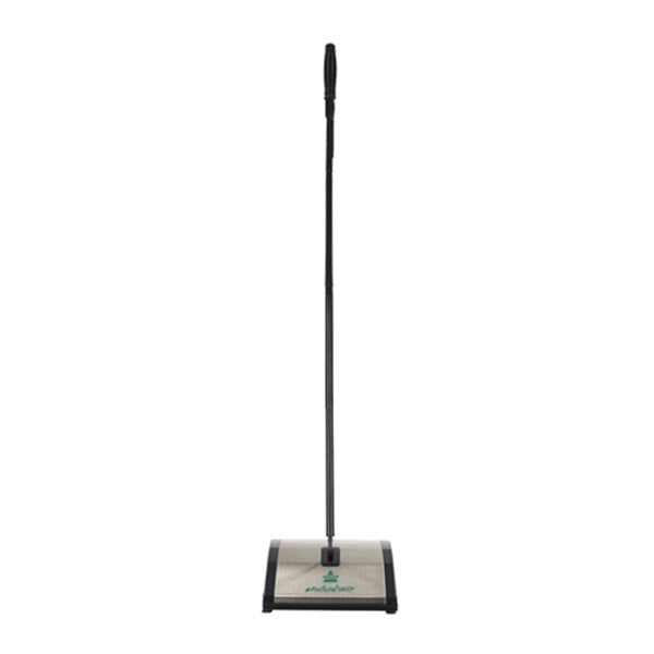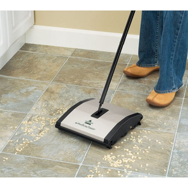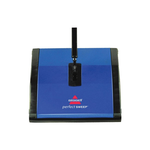 Six-brush system for great carpet and floor pick-up. Heavy-duty metal construction. Six-wheel system automatically adjusts to changes in floor surfaces. Large capacity, twin dirt pans. Wider cleaning path. Dual brush roll system picks-up crumbs, dirt and pet hair. Four corner brushes maximize cleaning along baseboards. Blue.