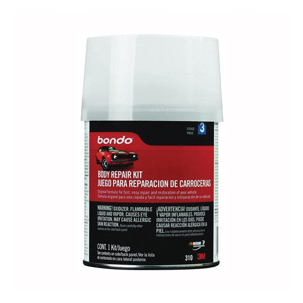 This Bondo® body repair kit contains everything you need to repair dents, rust holes, scratches and more on vehicle bodies and panels. Along with step-by-step instructions, this kit contains red cream hardener, a self-adhesive metal body patch, a spreader and the original Bondo® body filler the materials used by collision repair pros, in a money-saving kit for auto body repairs large and small.