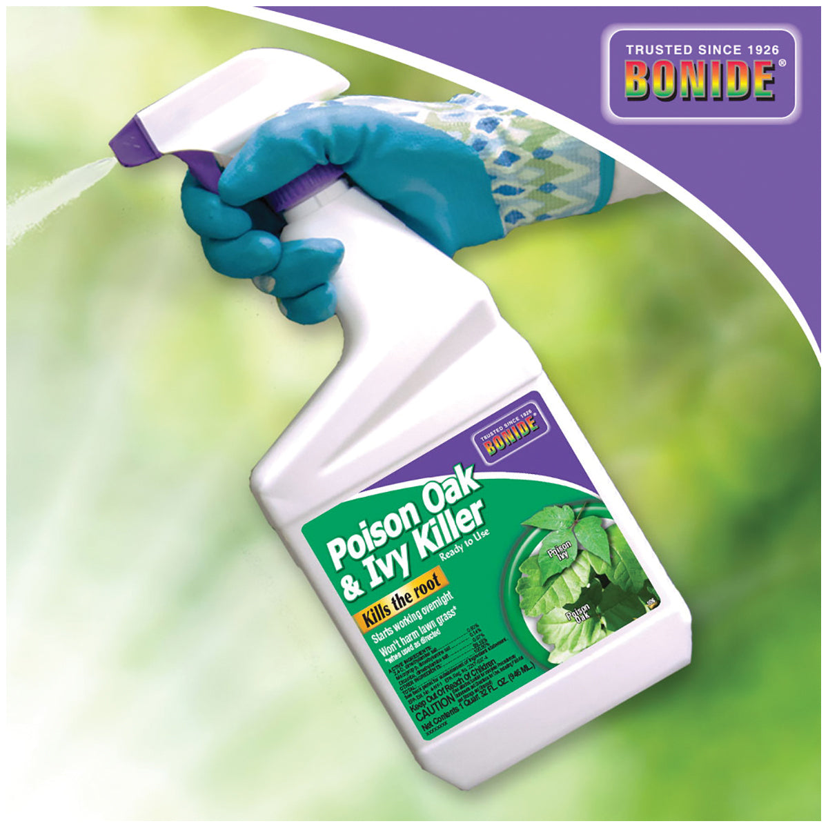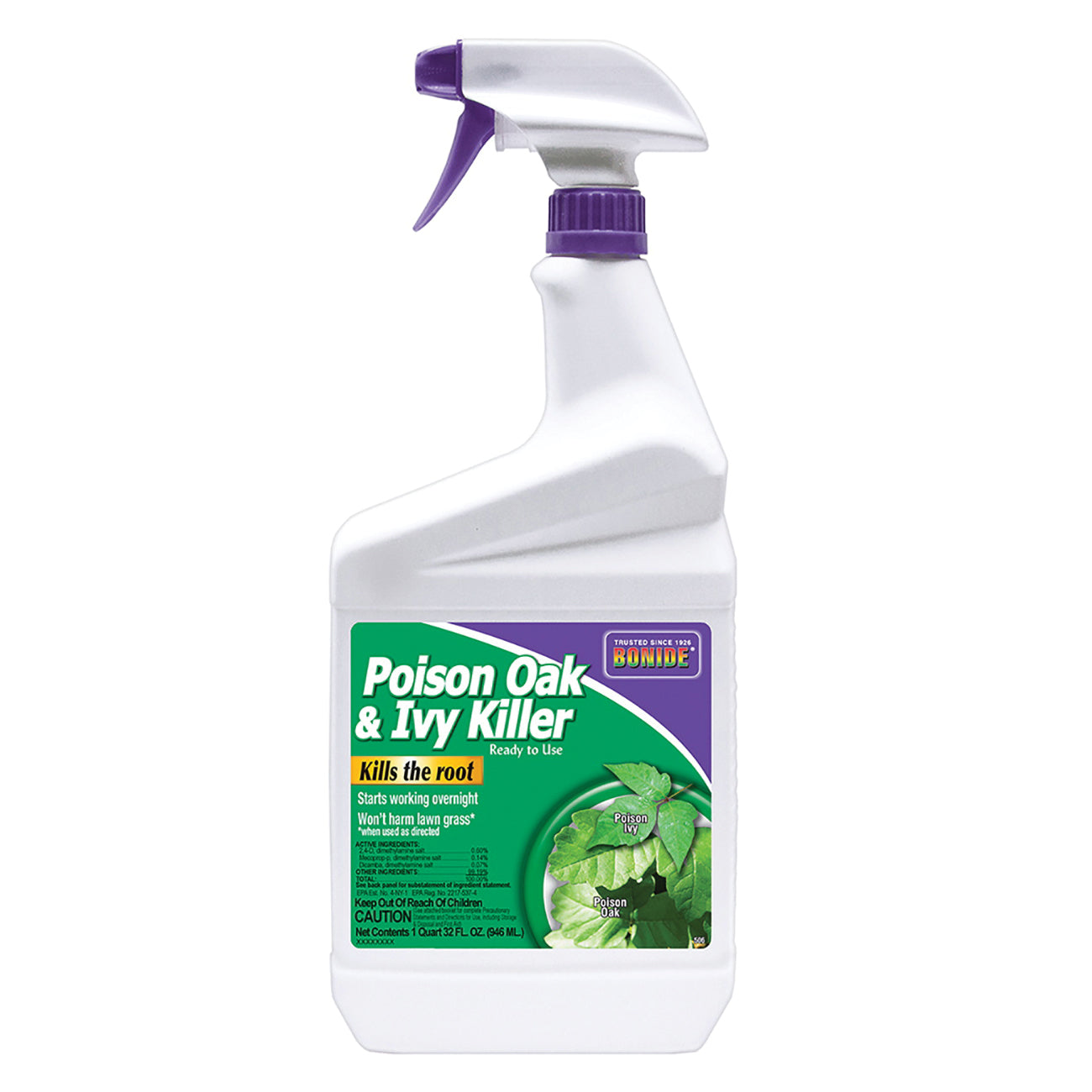 BONIDE Poison Ivy & Oak Killer is a systemic weed killer designed to control weeds to the root. It won't harm lawngrass and is safe and effective to use when used as directed. Product is rainfast after application is dry.