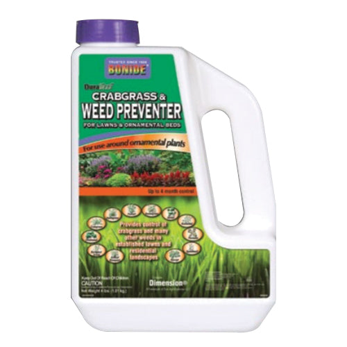 Pre-emergent control of grassy and broadleaf weeds. Dozens of tolerant ornamentals listed. Non-staining. For northern and southern turf grass species. Depending on rate used, one application can last 2 to 4 months and even have some early post emergence effectiveness.