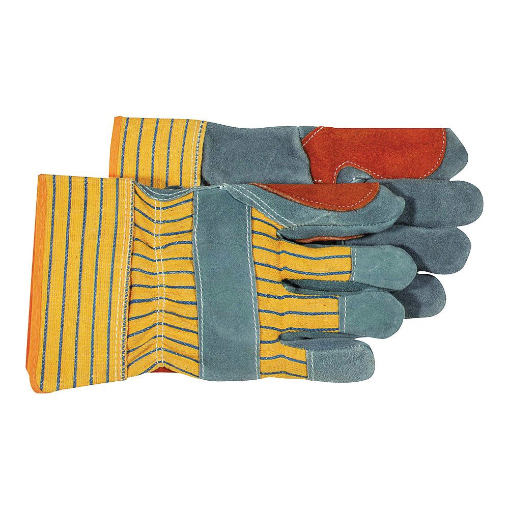 Boss Gloves, Driver, L, Palm Material: Cow Split Leather, Gray/Yellow, Cuff Type: Rubberized Safety, Pattern Type: Gunn Cut, Lined/Unlined: Unlined, Resists: Moisture