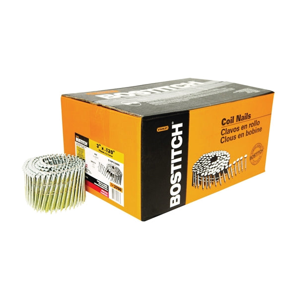 Bostitch Framing Nail, Collation Type: Wire Weld, Collation Angle: 15 deg, Head Type: Round, Point Type: Diamond, Shank Type: Smooth, Material Gauge: 11, 0.12 in Dia, 3 in L, Steel, Thickcoat, Suitable for: N80CB, N86C, N89C, N100C, N100CPP, N75C Pneumatic Nailer, DUOFAST CNW-75, Hitachi NV83A, Makita AN901, Max 890C, Paslode F275C,P275C, F325C, P325C, 5300C, Porter-Cable Coil350, Senco SCN60, SCN65 Nailer