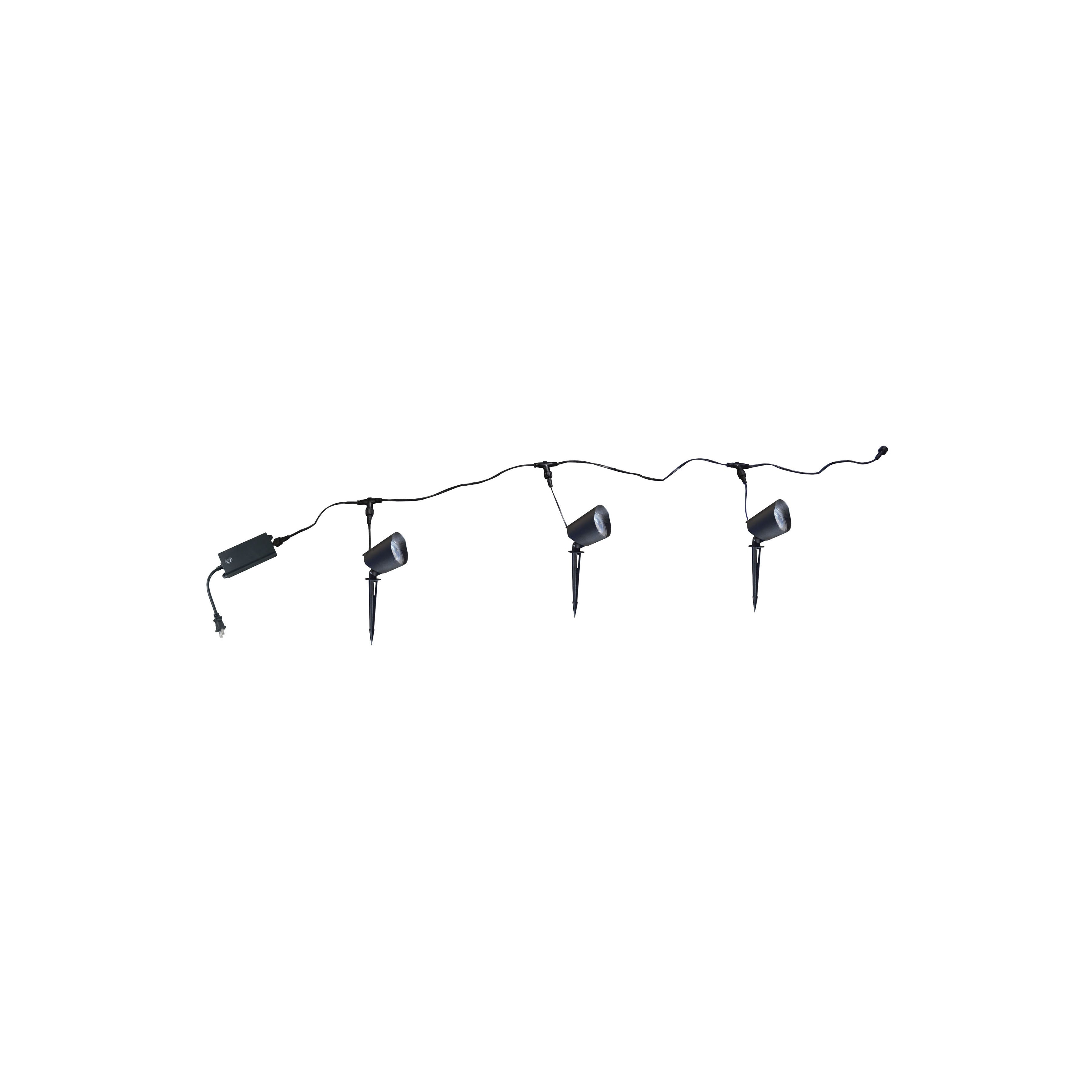 Boston Harbor Spot Light Kit, Wattage Rating: 24 W, Lumens: 200 Lumens, Cord Size: 25 ft, Includes: (3) Spotlights, 24 W Dusk to Dawn Transformer with Time on Options, (2) End caps Link up to 8 Spotlights